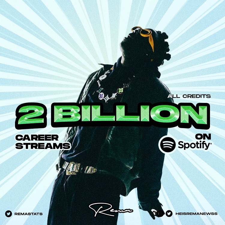 Nigerian music star Rema has now surpassed 2 billion career streams on Spotify